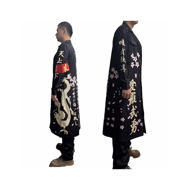 [COSSA] ハロウィン 天下無敵 特攻服 コスプレ【ローブ+腕章】 2点セット 暴走族特攻服 コスプレ クリスマス特攻服 コスプレ衣装 コスチューム 仮装 演出服 クリスマス 男女兼用 (ブラック, L)