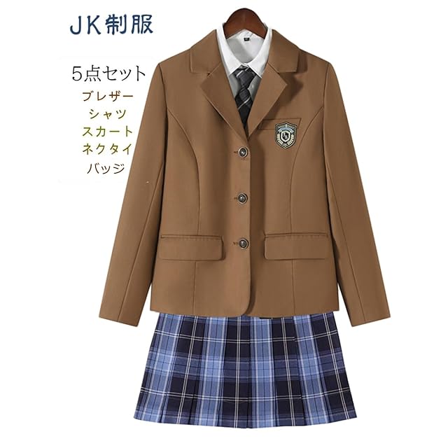 ✅【5点セット内容】:ブレザー+長袖シャツ+スカート+ネクタイ+バッジ