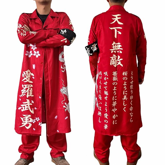 商品名:[COSSA] ハロウィン 天下無敵 特攻服 コスプレ【ローブ+腕章】 2点セット 暴走族特攻服 コスプレ クリスマス特攻服 コスプレ衣装 コスチューム 仮装 演出服 クリスマス 男女兼用 (赤, XL)