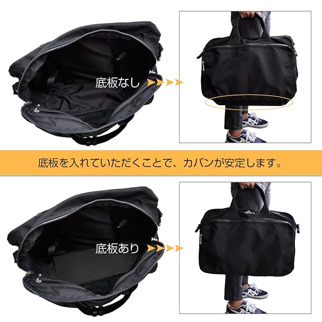 柔らかいバッグを安定させる丈夫な底板。