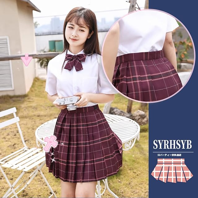 SYRHSYB 制服 スカート ミニ プリーツスカート コスプレ 写真撮影 パーティー衣装 JKスカート 白いシャツ リボン スクールスカート3点セット