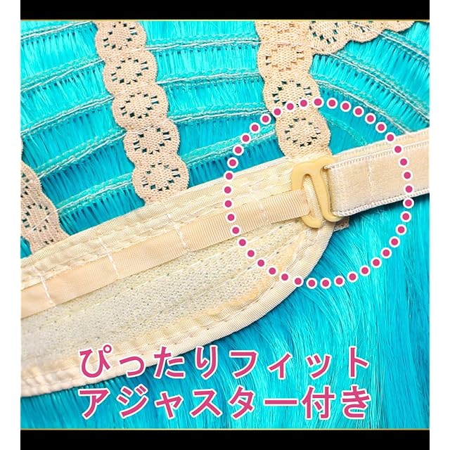 つむじから一番長い毛先まで髪の長さは約100cmです。長めなのでお好みの髪型にカットしたり、スタイリングして頂けます。フリーサイズで頭囲50~60cmに対応。内側のアジャスターで頭回りのサイズを調節することができます。