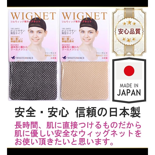 ストレートロングウィッグ本体&ホワイトメルチェブランドのウィッグネット2個(ブラック、ベージュ各1個)、のセットとなっております。