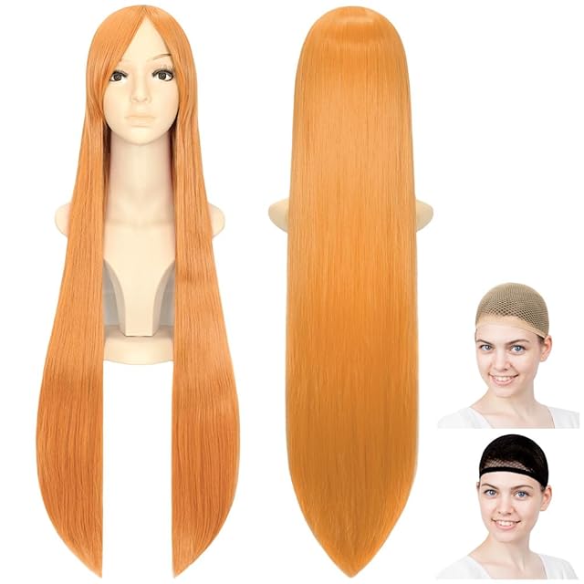 CaseEden スーパーロングストレート ウィッグ ウィッグネット 2個セット コスチューム用小物 クレセントゴールド 100cm