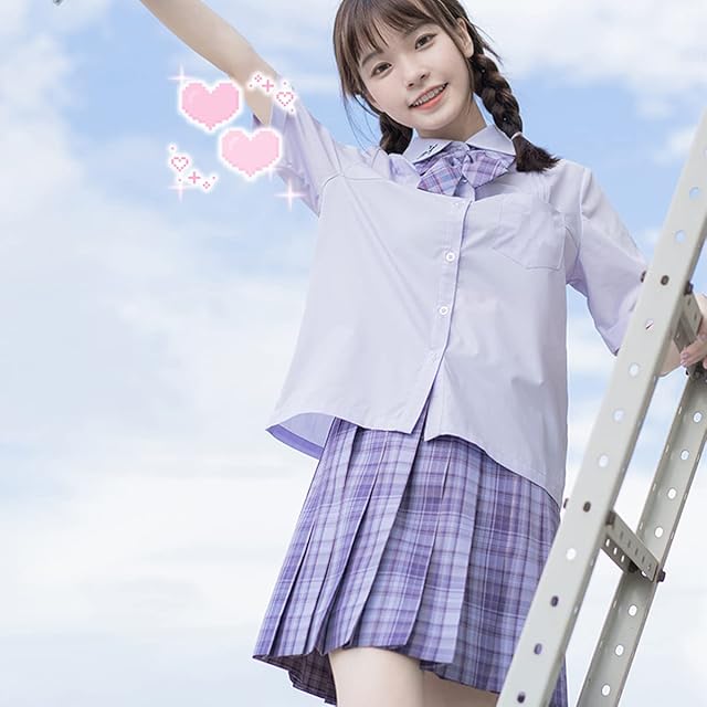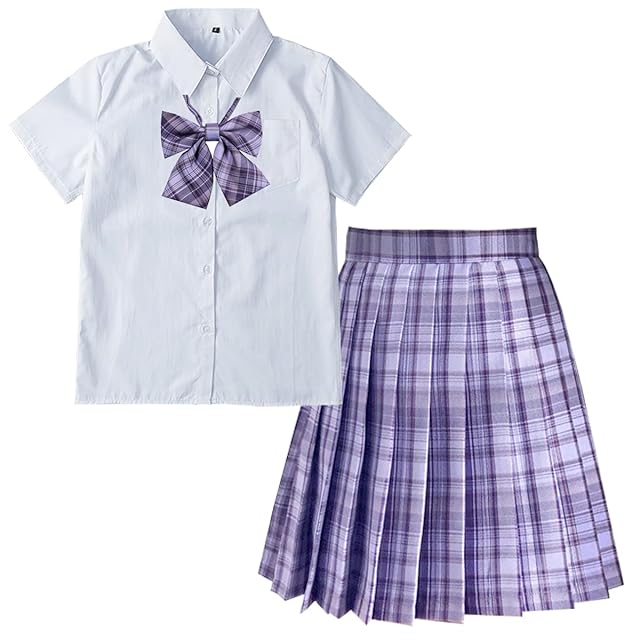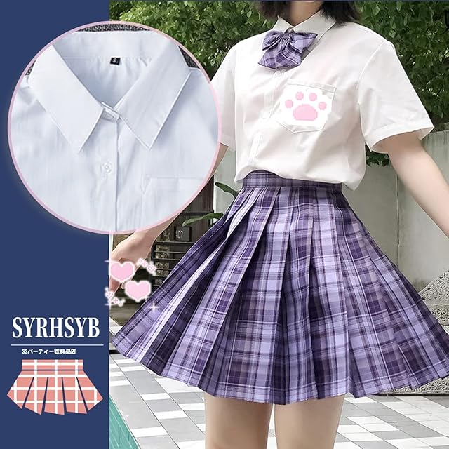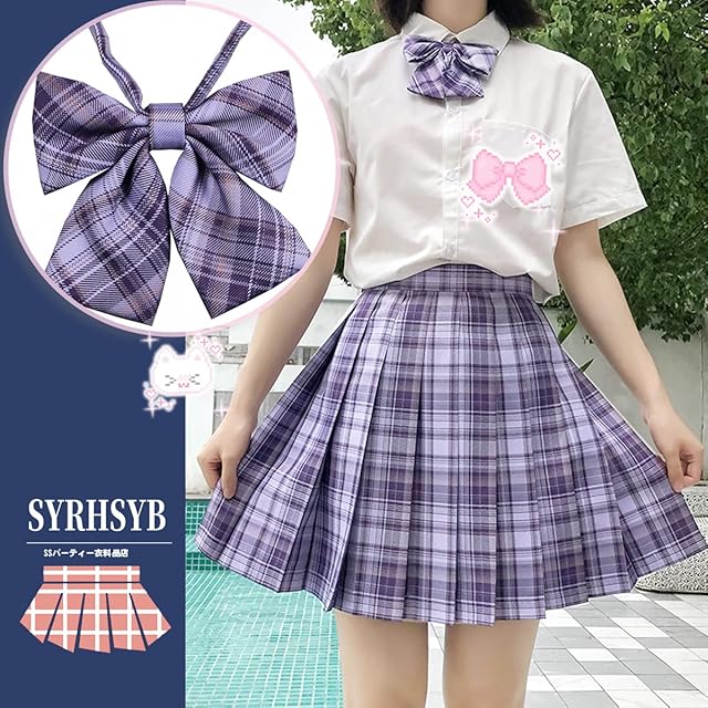 商品名:[SYRHSYB] 制服 スカート ミニ プリーツスカート コスプレ 写真撮影 パーティー衣装 JKスカート 白いシャツ リボン スクールスカート3点セット(グレープソーダセット/半袖, XL)