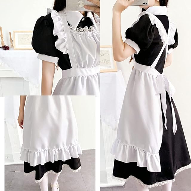 [FULINE] メイド服 英国風 コスプレ衣装 半袖 コスプレ衣装 女装 仮装 ゴスロリ ワンピース 大きいサイズ 半袖 ロング 2XL