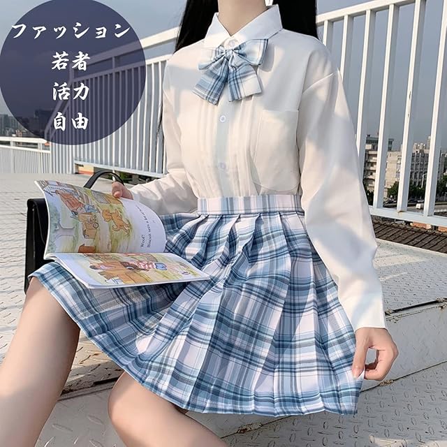 商品名:[SYRHSYB] 制服 スカート ミニ プリーツスカート コスプレ 写真撮影 パーティー衣装 JKスカート 白いシャツ リボン スクールスカート3点セット(不死川セット/長袖, L)