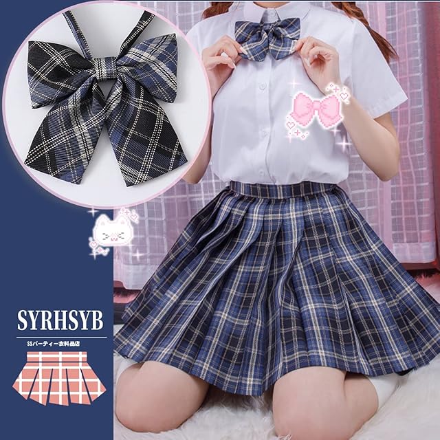 SYRHSYB 制服 スカート ミニ プリーツスカート コスプレ 写真撮影 パーティー衣装 JKスカート 白いシャツ リボン スクールスカート3点セット