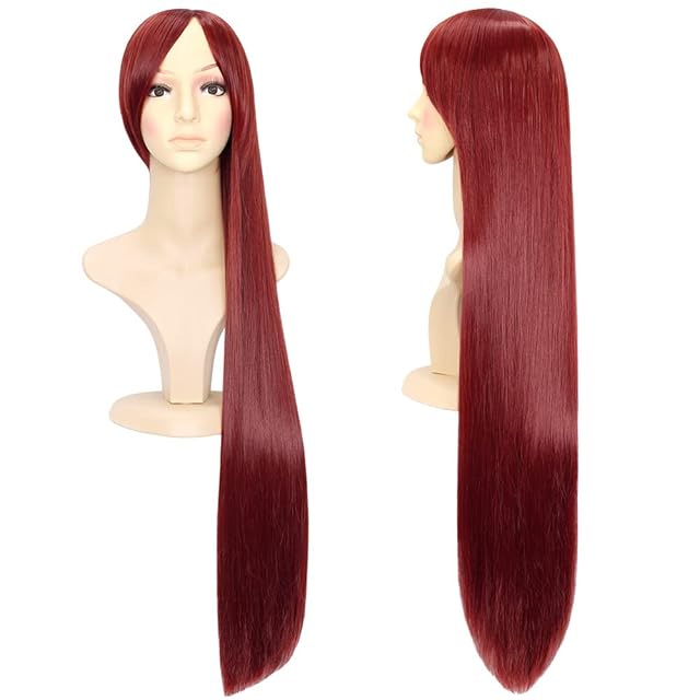 CaseEden スーパーロングストレート ウィッグ ウィッグネット 2個セット コスチューム用小物 マルーン 100cm