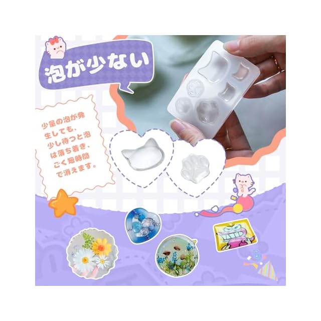 低臭気で環境にもやさしい:匂いが少なく、無毒設計の液レジンは、お子様やペットがいる環境でも安心して使用可能。環境に優しい素材で作られており、工作やDIYをより安全で楽しいものにする。