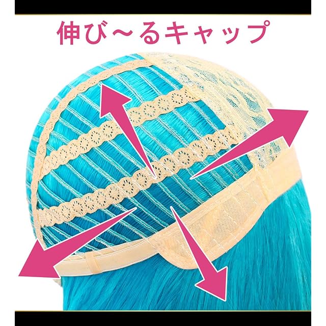 つむじから一番長い毛先まで髪の長さは約100cmです。長めなのでお好みの髪型にカットしたり、スタイリングして頂けます。フリーサイズで頭囲50~60cmに対応。内側のアジャスターで頭回りのサイズを調節することができます。