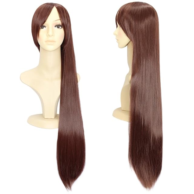 CaseEden スーパーロングストレート ウィッグ ウィッグネット 2個セット コスチューム用小物 レッドブラウン 100cm