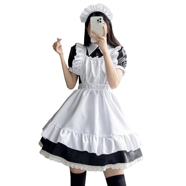 [FULINE] メイド服 ショートスカート 英国風 コスプレ衣装 半袖 レディース エプロン ドレス コスチューム 仮装 女装 学園祭 ショート M