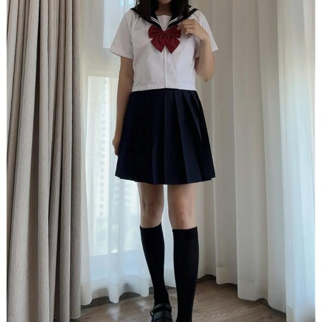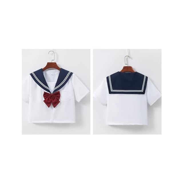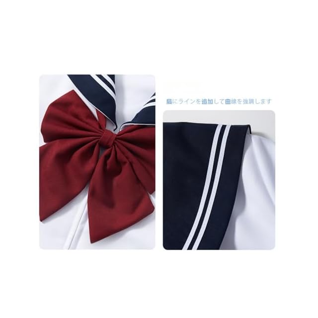[COSSA] セーラー服 本格制服 コスプレ 半袖 JK 女子高生 制服 中学生 高校生 スカート 蝶結び 3点セット スクールスカート コスチューム 大きいサイズ (レッドブルー, XXL)