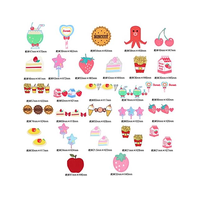 セット内容:ワッペン11枚(MOW722 クリームソーダ 、 MOW723 ロリポップ 、 MOW724 ビスケット 、 MOW750 タコさんウィンナー 、 MOW751 さくらんぼ 、 MOW753 ケーキ 、 MOW798 キャンディ 、 MOW799 いちご 、 MOW844 パステルケーキ 、 MOW867 ポテトフライ 、 MOW868 イチゴミルク )・連続ワッペン10枚(MOW872 ポテトフライ 、 MOW873 イチゴミルク 、 MOW729 オムライス 、 MOW731 クリームソーダ 、 MOW732 ロリポップ 、 MOW733 ビスケット 、 MOW758 ケーキ 、 MOW779 アイスクリーム 、 MOW806 キャンディ 、 MOW807 いちご)・ミニワッペン10枚(MOW711 オムライス 、 MOW789 キャンディ 、 MOW837 パステルケーキ 、 MOW862 ポテトフライ 、 MOW863 イチゴミルク)・ミニワッペン2枚(MOW466 リンゴ 、 MOW663 イチゴ)