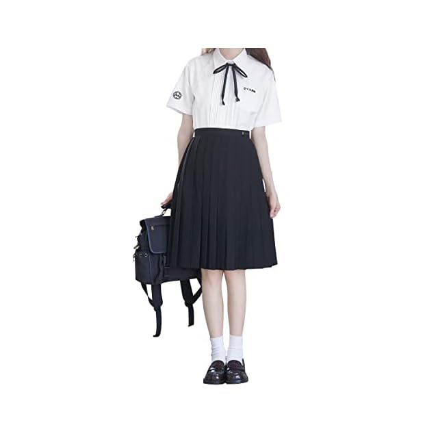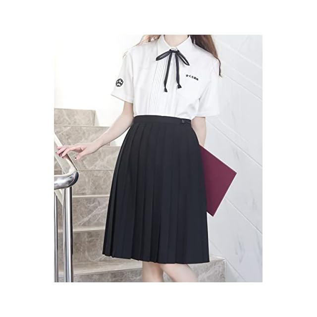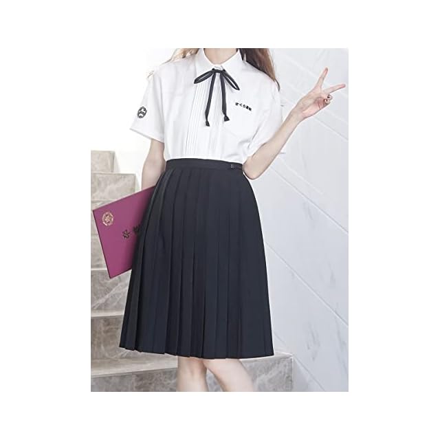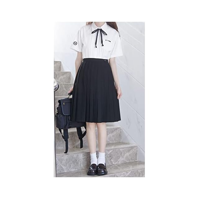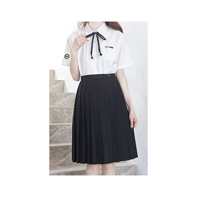 [Sharphon] 制服 スカート 60CM丈 膝上 黒 無地 ライン ハイウエスト プリーツスカート セーラースカート
