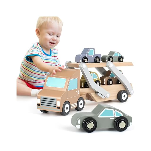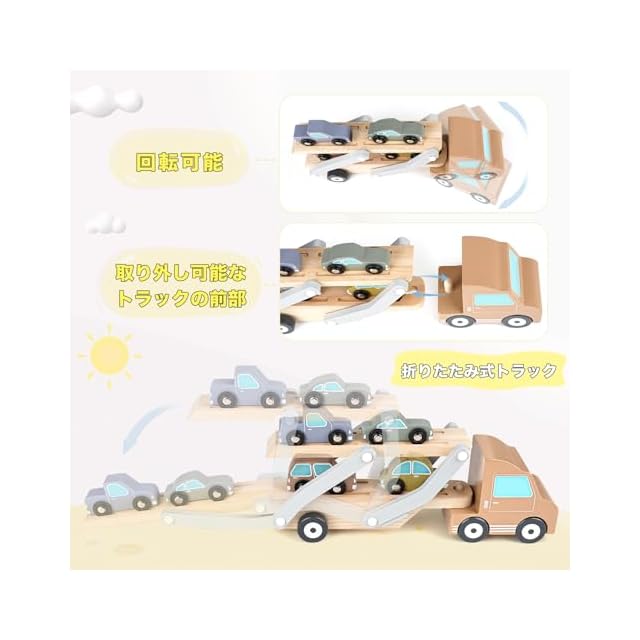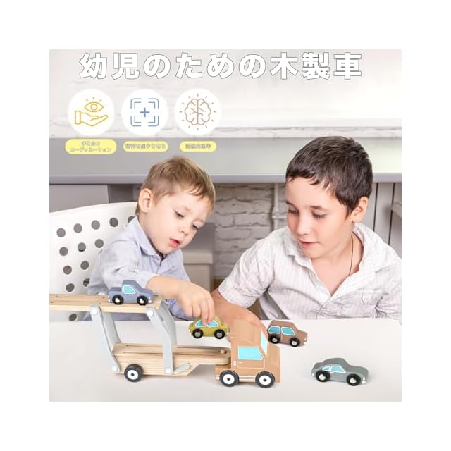車 おもちゃ:この 木のおもちゃ車 おもちゃは、4台の小さな車を積み込むことができ、それぞれの車を積み下ろしすることで、男の子 女の子の運動能力を促進します。 はたらくくるまを目的地まで安全に届けることで、インタラクティブな遊びを促すことができます。1 2 3 歳 おもちゃ。