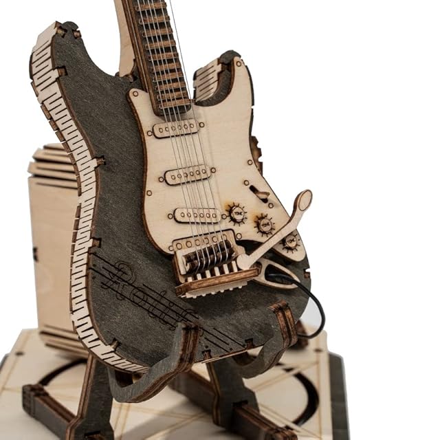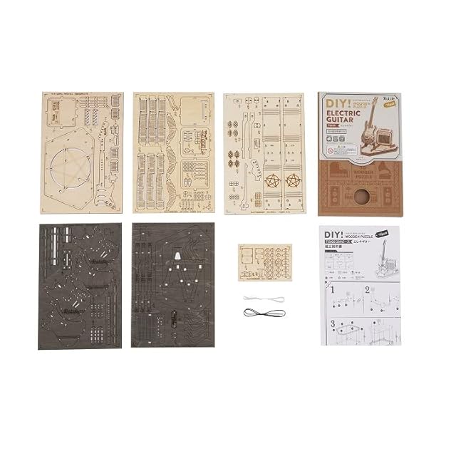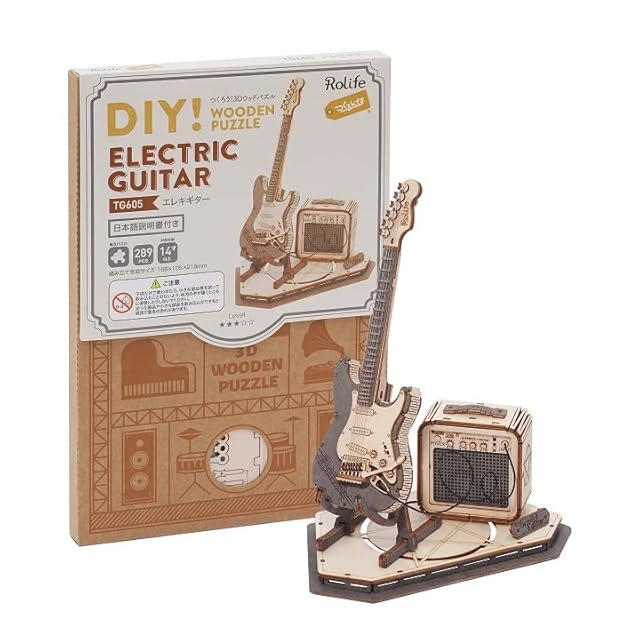 世界で人気の3Dパズルが日本語説明書付きで登場! お子様から大人まで楽しめるウッドパズル。アンプ、ステージ付きで存在感バッチリなエレキギター。 弦やアンプのコードに別素材を使用し、蛇腹パーツによってエレキギターの複雑なフォルムが再現された、完成度の高いウッドパズルです!蛇腹パーツ部分は少し難易度が高いですが、手軽に作りやすいウッドパズルとなっています。完成後は楽器シリーズ「TG409 ドラム」と一緒に飾ってバンドを再現するのもオススメです!このキットは、カット済みウッドシートとサンドペーパーが入ったオールインワン組み立てキット。 特殊な道具も不要なのでプレゼントにもオススメです!
