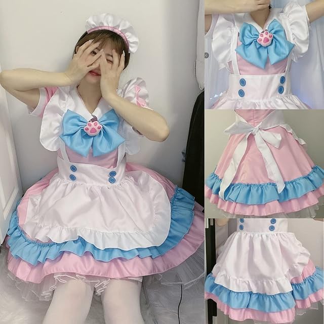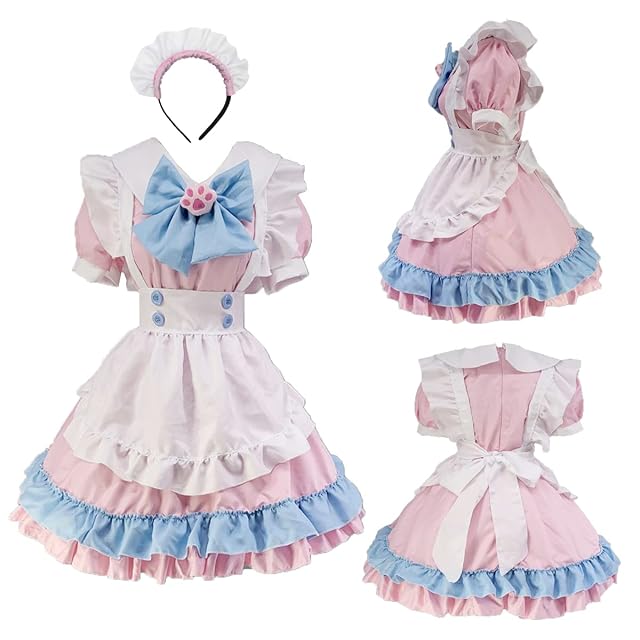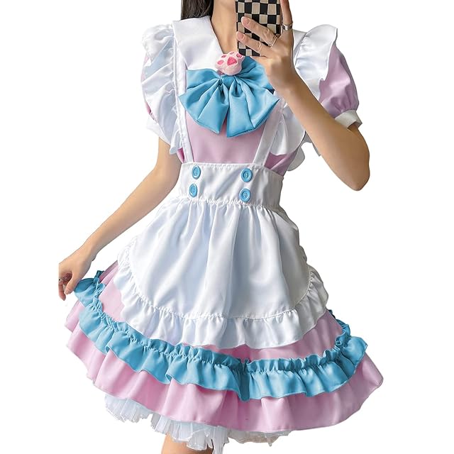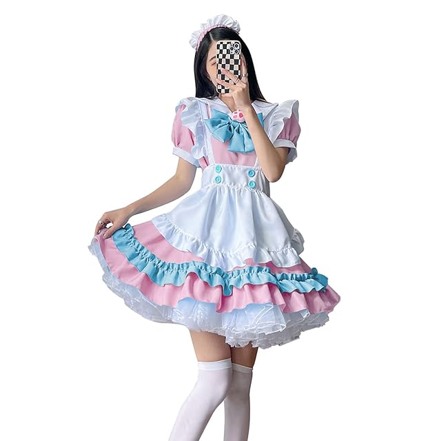 [FULINE] メイド服 レディース コスプレ衣装 lolita メイド服 コスプレ アリス風 コスチューム 仮装 学園祭 メイドカフェー 女装 仮装 ピンク 5XL