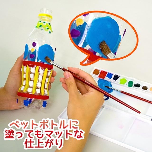 【特長1】マット水彩の優れた描画特性にペットボトルや牛乳パック等のいろいろなものに描ける機能を追加