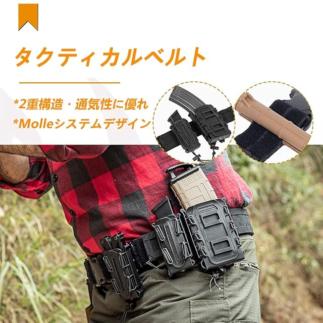 【高機能ベルト】このタクティカルベルトは、信頼性、耐摩耗性、軽量性に優れています。それ以外は耐久性も良く、毎日使っても破れほつれがないのは凄い。金属製のバックルはワンタッチで簡単に装着でき、しっかりホールドしてくれます。