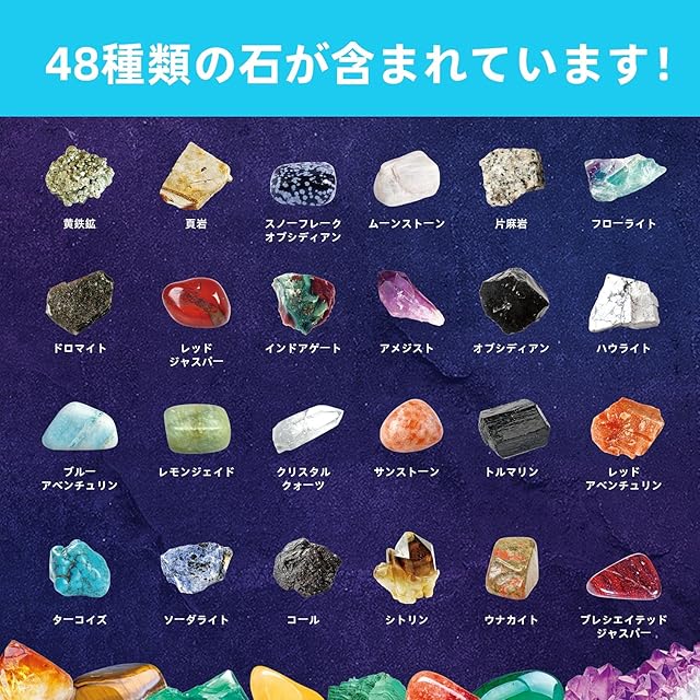 商品名:XXTOYS 鉱石標本48種 天然鉱石 宝石おもちゃ 岩石標本 クリスマス プレゼント ロック&ミネラル コレクション ジェムストーン 地質科学キット 48個セット アメジスト 子供 ギフト(日本語版)
