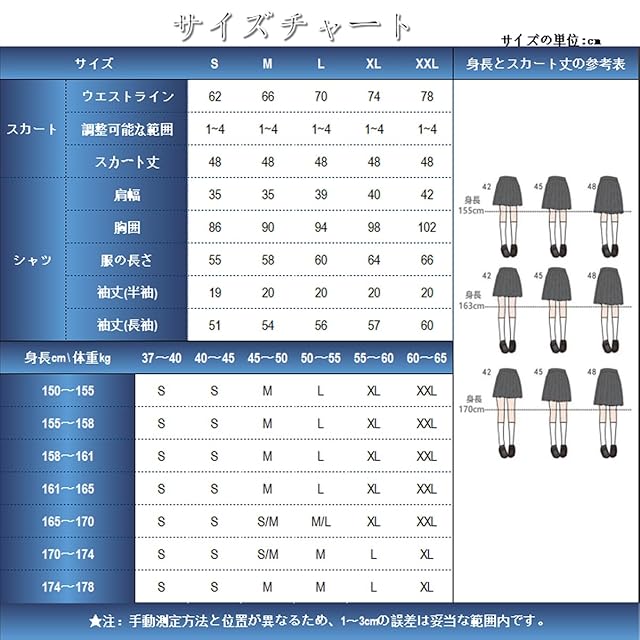 【お勧め用途】気軽に学生時代にタイムスリップして、青春時代を味わえます。女子高生の制服として着るだけでなく、写真撮影、学園祭、お祭り、イベント、文化祭、メイクアップパーティー、cosplay。日常生活、文化祭、遊園地に特に適しています。汚れを防ぐために、白いトップスを他の色あせた衣服で洗わないでください。※SYRHSYBは当社のブランドです、商標登録No6442331.