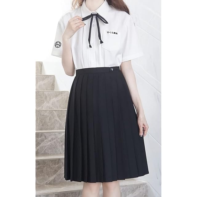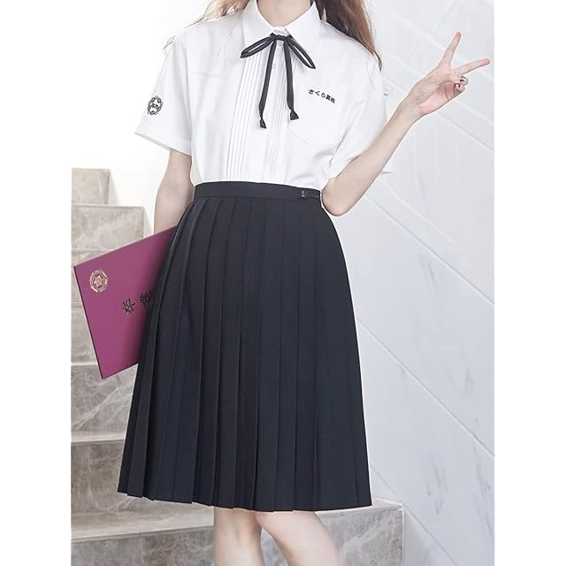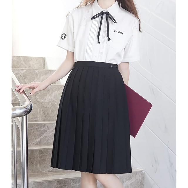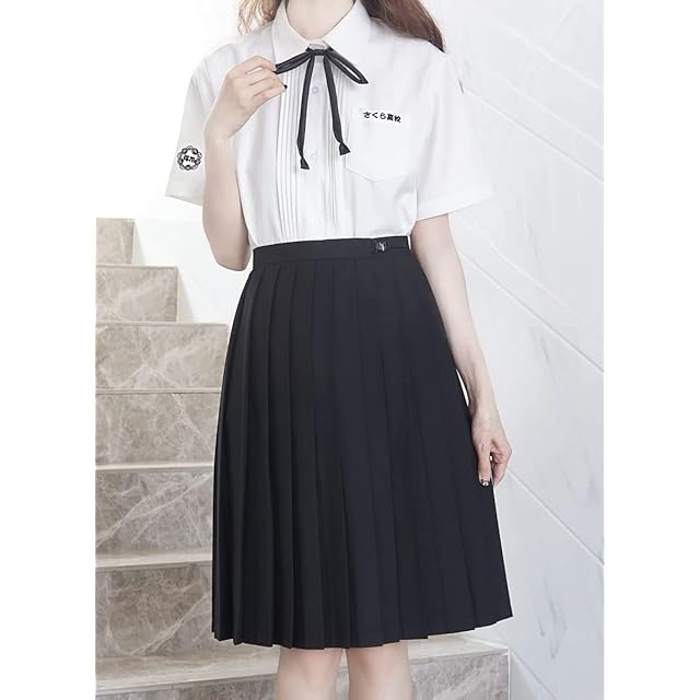 [Sharphon] 制服 スカート 60CM丈 膝上 黒 無地 ライン ハイウエスト プリーツスカート セーラースカート