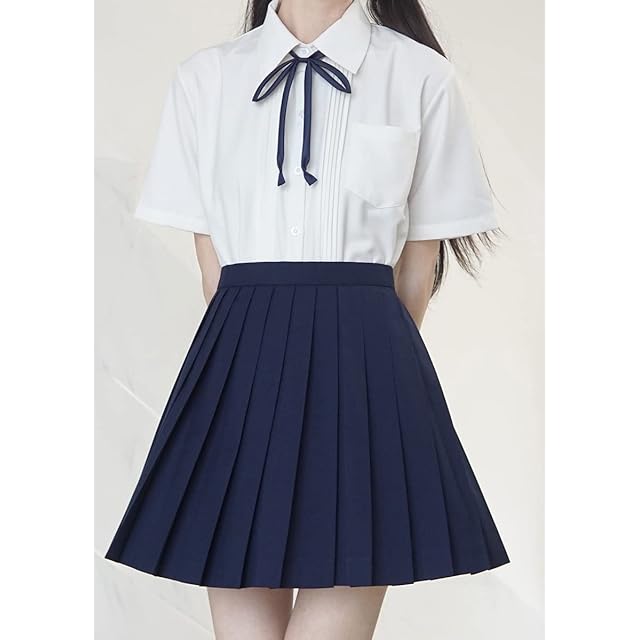 [Sharphon] 制服 スカート 42CM丈 紺 ミニスカート 無地 ライン ハイウエスト プリーツスカート スクールスカート