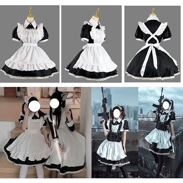 商品名:[FULINE] メイド服 コスプレ コンカフェ メイド エプロン 定番 ショート丈 メイドコスチューム 仮装 レディース メンズ セット 一式 こすぷれ イベント パーティー 大人 男女兼用 ブラック L
