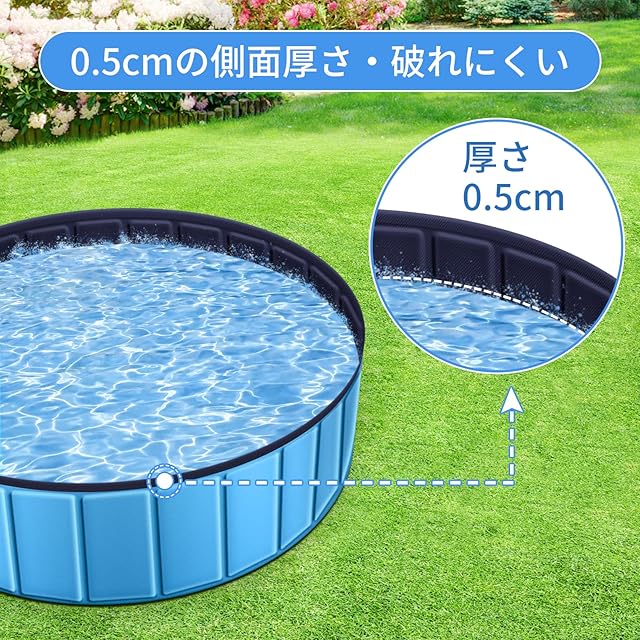 ♡ [0.5cmの側面厚さ・破れにくい] :このプールは直径80x高さ20cmのサイズと、側面0.5cmの厚さの構造で、通常の犬や猫などペットのひっかくでも損傷しません。また、体重10kg未満と身長40cm未満のペットには最適です。