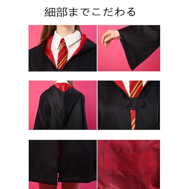 豪華4点変身セット:ローブ+ネクタイ+魔法の杖+メガネ(レンズなし)