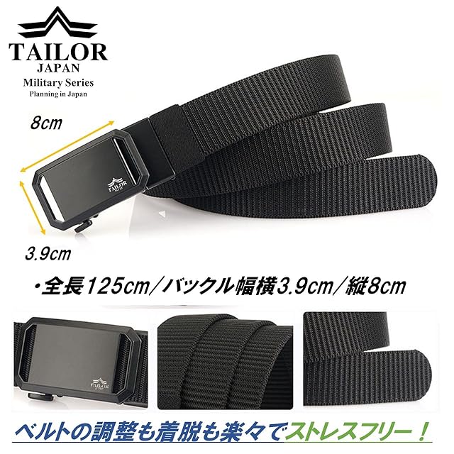 [TAILOR JAPAN] 新型 オートロックベルト サバゲーベルト タクティカルベルト ミリタリーベルト タクティカル ベルト ナイロンベルト サバゲー装備 作業用ベルト 1000Dナイロン製 フリーサイズ (ブラック)