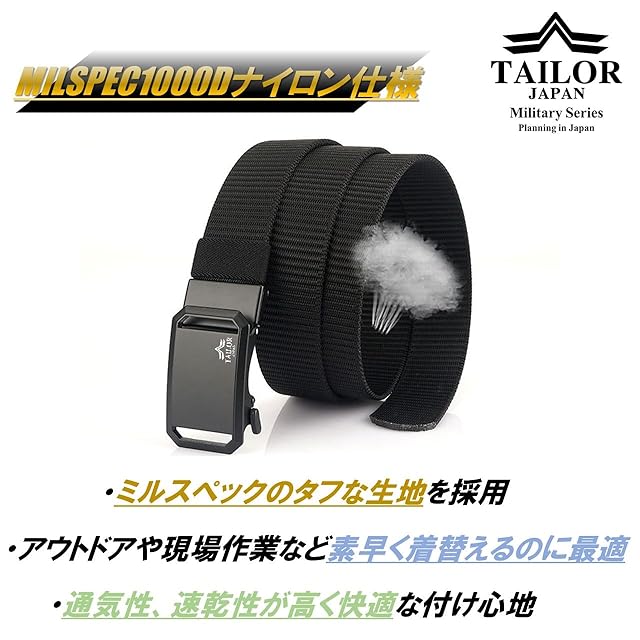 商品名:[TAILOR JAPAN] 新型 オートロックベルト サバゲーベルト タクティカルベルト ミリタリーベルト タクティカル ベルト ナイロンベルト サバゲー装備 作業用ベルト 1000Dナイロン製 フリーサイズ (ブラック)