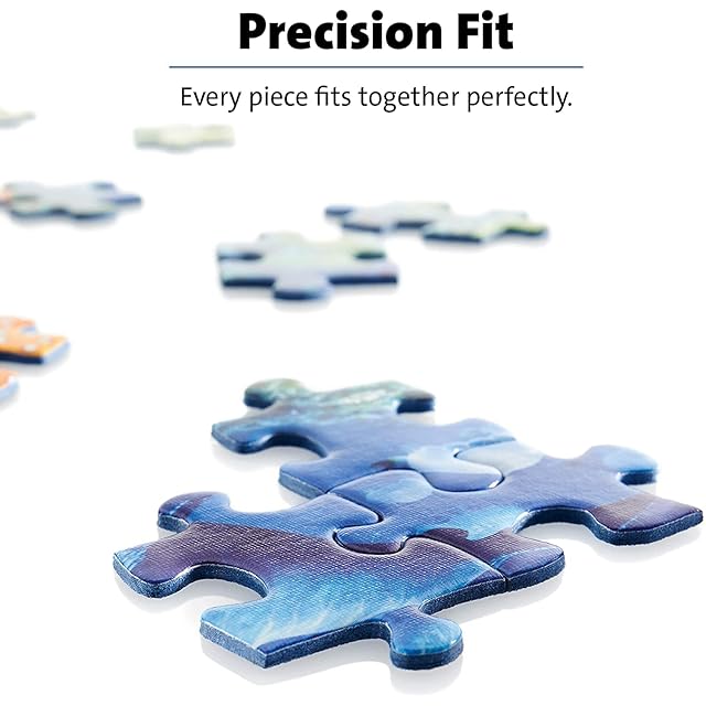 【心地良いフィット感】ラベンスバーガーのジグソーパズルは何年もかけて開発された層のない青色台紙を採用しています。適度の厚さで台紙の湾曲や劣化を防ぐとともにパズルを組み上げる際に心地良いフィット感を与えます。
