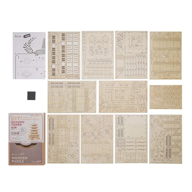 世界で人気の3Dパズルが日本語説明書付きで登場! お子様から大人まで楽しめるウッドパズル。 和の情緒あふれる、本格的な五重塔。 リアルに再現した五重塔は、歴史好きな方なら見入ってしまうこと間違いなし◎ 五重の屋根は下から地、水、火、風、空からなるもので、それぞれが5つの世界を示しています。 このキットは、カット済みウッドシートとサンドペーパーが入ったオールインワン組み立てキット。 特殊な道具も不要なのでプレゼントにもオススメです!