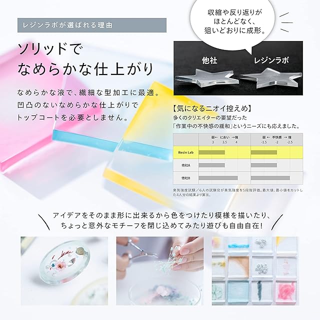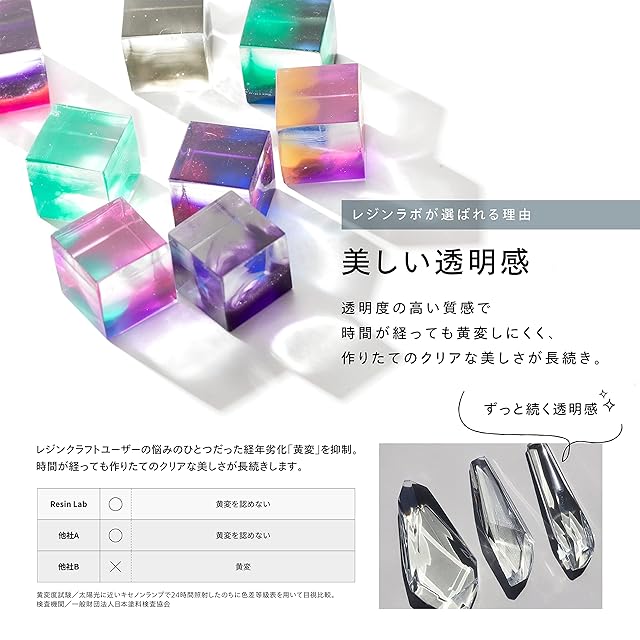 速さと美しさを両立した、LED ランプ専用レジン液。信頼の日本製で、初めての方はもちろんプロのクリエイターまで、レジンクラフトを愛するすべての方に納得の仕上がりを提供します。