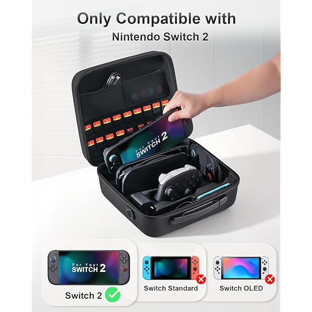 【対応機種】収納バッグは Switch 2 ゲーム機用に設計され、大容量の収納バッグはすべてのゲームアクセサリーを収納するのに十分です。