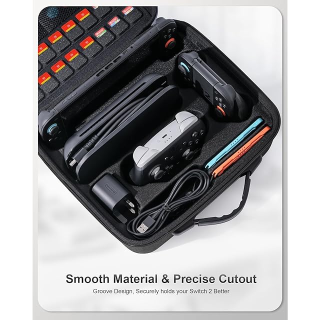 【収納力抜群】固定スロットのレイアウトが合理的で、Switch 2本体、Joy-Con、Switch 2 Proコントローラー、充電ケーブルなどを分類して収納でき、雑然とした状態から脱却し、アクセサリーの探し出しが迅速かつ簡単で、小物の紛失を防ぎます。