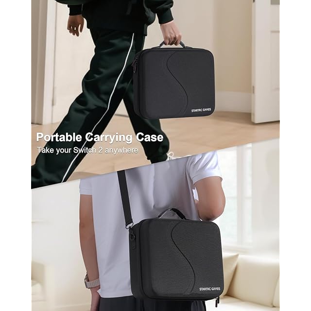 【持ち運びやすい】Switch 2 専用の収納ケースはショルダーストラップが付いています。お必要に応じて肩掛け式または手提げ式をお選びください。ゲームを一緒にプレーする友達の家に行く場合、全てのゲーム用品を収納して、持ち運びやすいです。