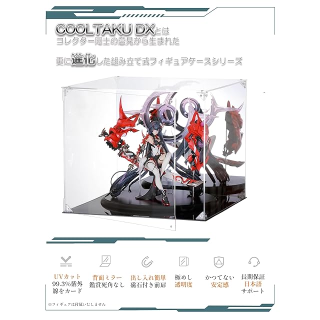 【UVから守る】フィギュアの日焼けによる劣化を防ぐUVカット加工を施している。UVカット率99.3%以上(※ISO9050準拠)、紫外線からのダメージをしっかりガードできる!● 壊れにくい、厳選した厚さ2.8mmの高透明アクリル素材を使用、貴重なコレクションを確実に保護します。