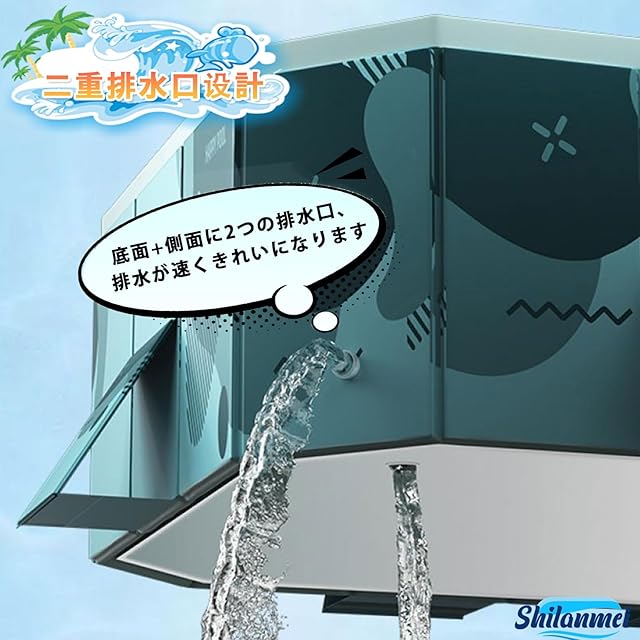 【使いやすさが魅力のプール】:「Shilanmei折りたたみプール」、組み立て不要、めんどな空気入れする必要がなく、穴が開いて萎んでしまう心配もございません!わざわざ高価な電動エアーポンプを購入する必要もない!屋外でも室内でも使える、暑い季節に大活躍!普段使わないときは、折りたたんでコンパクトに収納!<br><br> 【型崩れしないタイプ】:夏の水遊びを思いっきり遊べる頑丈設計!プールは、複合補強板とPVCで構成されている。PVC複合補強板の生地は最先端の技術で耐摩耗性と防水性が高いため、周囲には複数の三角形の支持板が分布しており、プールの外広がり変形を防止している。サポート力が 98% 向上しています、従来品より壁を支える部分を厚くしたことで安定感抜群、プールの型崩れの心配もありません。<br><br> 【滑り止め、ペットと子供に安全】:Shilanmei 折りたたみ式プールは、内壁と底の両方に厚い滑り止め素材を備えており、水を楽しんでいるときに滑りや落下を防ぎます。 子供用プールの側面では、子供やペットが簡単に飛び越えて水遊びを安全に行うことができます。<br><br> 【便利な水抜き栓付き】プールの底と側面に排水口付きだから、短時間に排水可能です。面倒な片付けも簡単にできます!水がプールいっぱいに入っていると意外と重く、ひっくり返して排水させるのはとても重労働となる場合がありますので、水抜き栓があるタイプのをオススメ。ご注意:安全のため、水量は最大容量の80%を超えないように注意してください。<br><br> 【家でも楽しく遊べるハッピープール 】家でも楽しく遊びを!夏の暑い時期に家でも楽しく遊べる大型ハッピープールを開発しました。ご自宅や公園などでファミリープールを使って楽しく遊んでください。 ボールプール、子供用 プール、ペットプール、家庭用 プール、子供のおもちゃ箱として大活躍します。屋外プール、バスタブ、おもちゃの箱、1台3役で1年中使える!お子様の水遊び、大きな物を洗う、ペットバス、おもちゃ入れ、まだまだ多くの用途があります。屋内プール、お庭、ビーチ、屋外などいつでもどこでも簡単に使える。暑い季節に大活躍!<br><br>