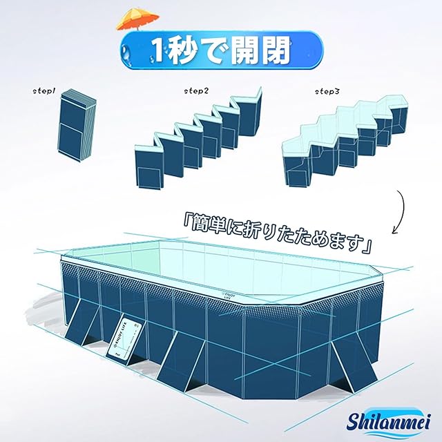 【使いやすさが魅力のプール】:「Shilanmei折りたたみプール」、組み立て不要、めんどな空気入れする必要がなく、穴が開いて萎んでしまう心配もございません!わざわざ高価な電動エアーポンプを購入する必要もない!屋外でも室内でも使える、暑い季節に大活躍!普段使わないときは、折りたたんでコンパクトに収納!