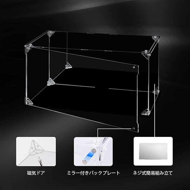 【商品詳細】(外寸)横幅40×奥行20×高さ20cm。台座((黒))・背面ミラー仕様。保護フィルム付。マグネット前扉。素材:アクリル 【30日間の期間】不良品の無料交換・返金サービスを提供いたします。