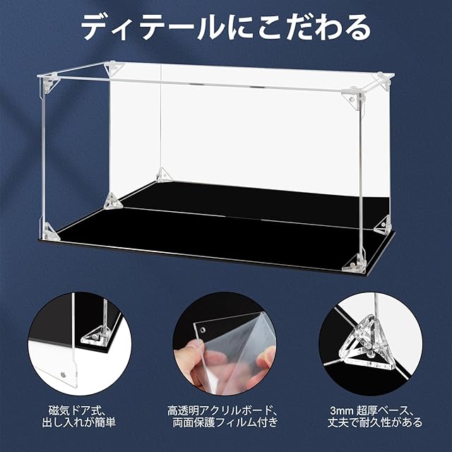 【安定感UP】 透明度の高いアクリル素材とユニークな三角結合構造により、圧倒的な堅牢性を実現しています。予期せぬ衝撃でも崩れ落ちにくい強度の連結構造は、お気に入りのモデルを保護するのに最適です。 ケースの角を完全に固定する為、片手で持ち運ぶことも可能。
