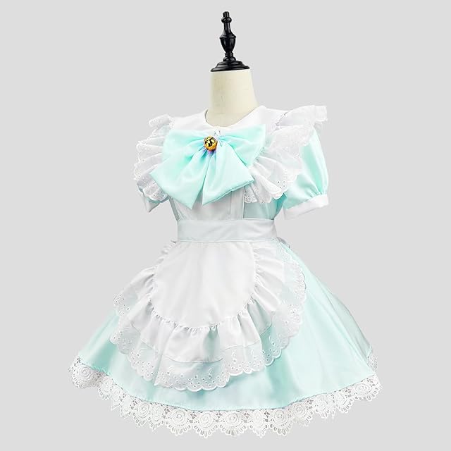 [MEYOIJK] メイド服 コスプレ 萌え コンカフェ メイド 定番 ショート丈 可愛い レース メイドコスチューム 5点セット ロリータ ワンピース レディース メンズ 大きいサイズ 仮装 ハロウィン 女装 人気 学園祭 撮影 (グリーン, S)