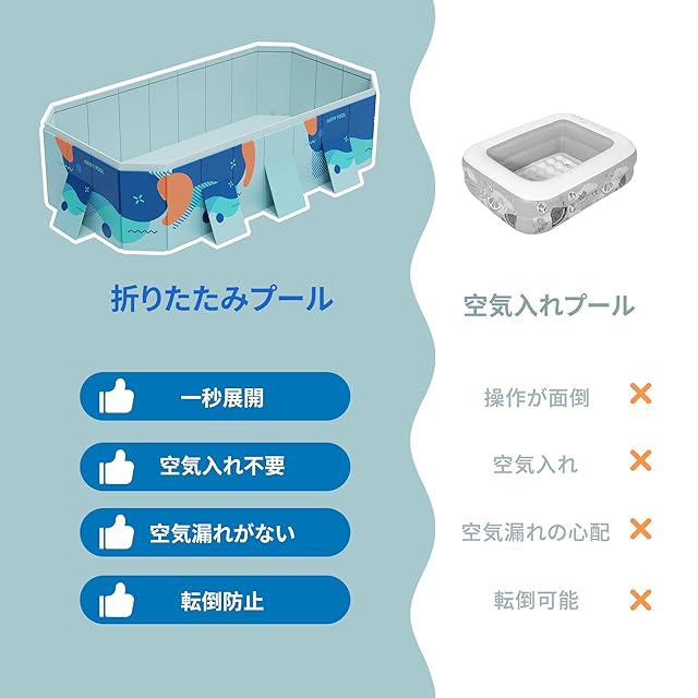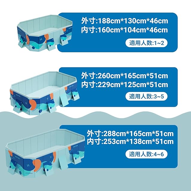 【空気入れ不要な折り畳みプール】Alebert革新的な折り畳み式プール!組み立て不要、空気入れ不要、水を入れるだけで簡単にできて、一人でも使えます。空気入れ不要なので、空気入りポンプを追加購入する必要がありません、広げるだけですぐに使用できます。屋外でも室内でも使用でき、暑い季節に大活躍です。普段使用しない時には、折りたたんで、スペースを取らず、コンパクトに収納できます。また、サイズが多種類ありますので、自分のニーズに合わせて選びましょう!