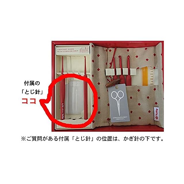 セット内容<br> クッショングリップ付きかぎ針(1/0、2/0、3/0、4/0、5/0、6/0、7/0、8/0)各1本<br> とじ針2本(No.13、No.15)、ものさし1本、ケース1個