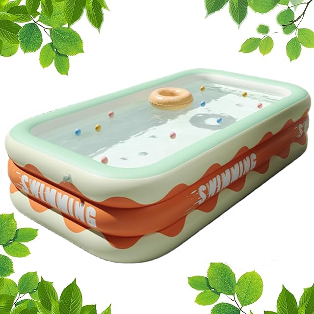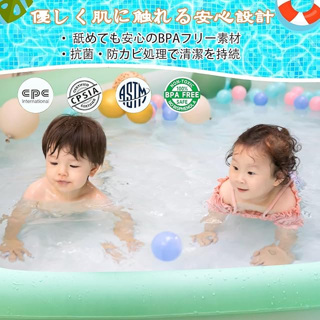 【3層強化で丈夫な耐久設計】業界トップクラスの0.4mm厚3層PVCを採用。破れにくく、夏の強い日差しにも負けないUVカット加工。BPA・フタル酸フリーの安全素材で、赤ちゃんが舐めても安心な人気のプールです。
