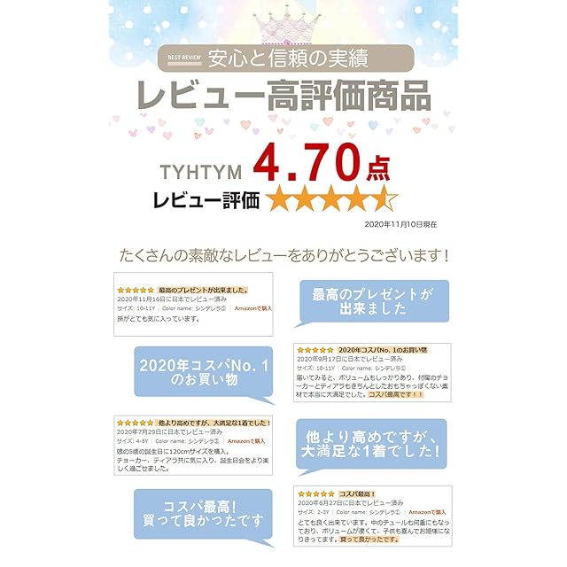 3.プリンセスドレスのスカート部分は5層構造になっており、適度なボリュームがあります。着心地の良いストレッチ素材がお子様の身体をお守り致します!身頃は伸縮性のある素材、ウエスト部分はゴムで伸縮性がありファスナーなしのかぶり着用なので、お子様にも優しい着心地です♡。 .
